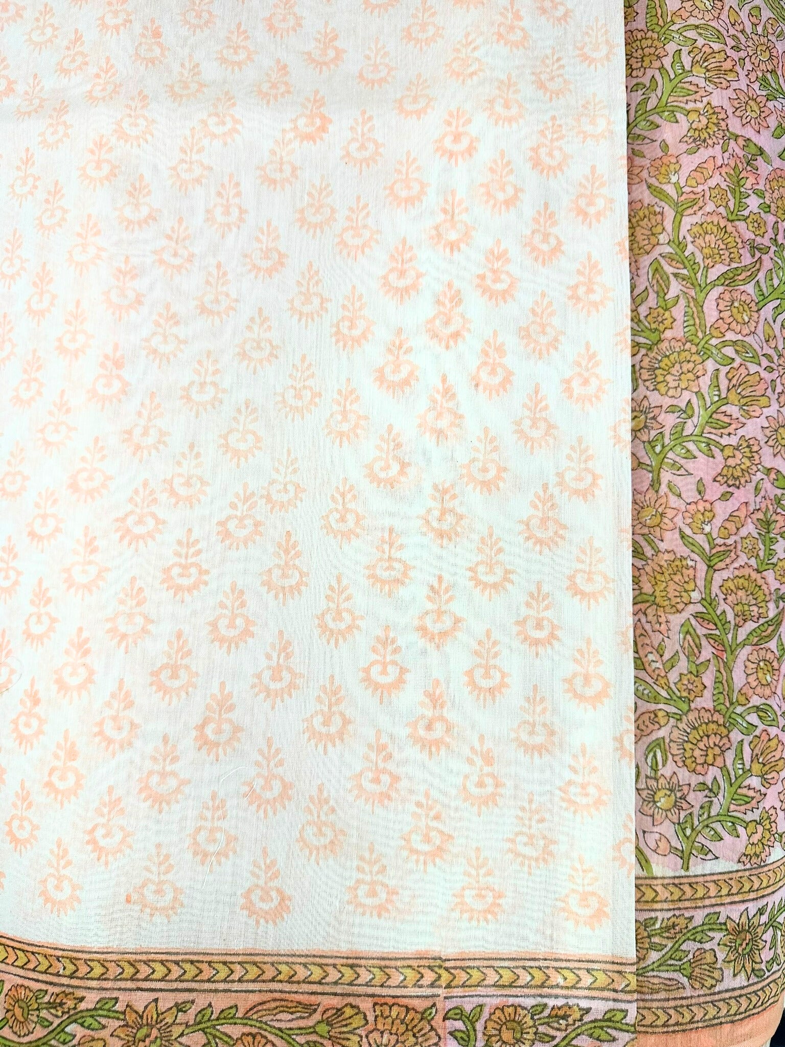The saree features a vibrant orange base adorned with delicate floral prints that add a refreshing charm to its look. The natural sheen of Chanderi silk enhances the colours beautifully, giving the saree a graceful and luxurious appeal. Lightweight, soft, and effortlessly stylish, this saree is perfect for festive gatherings, daytime events, and special celebrations.