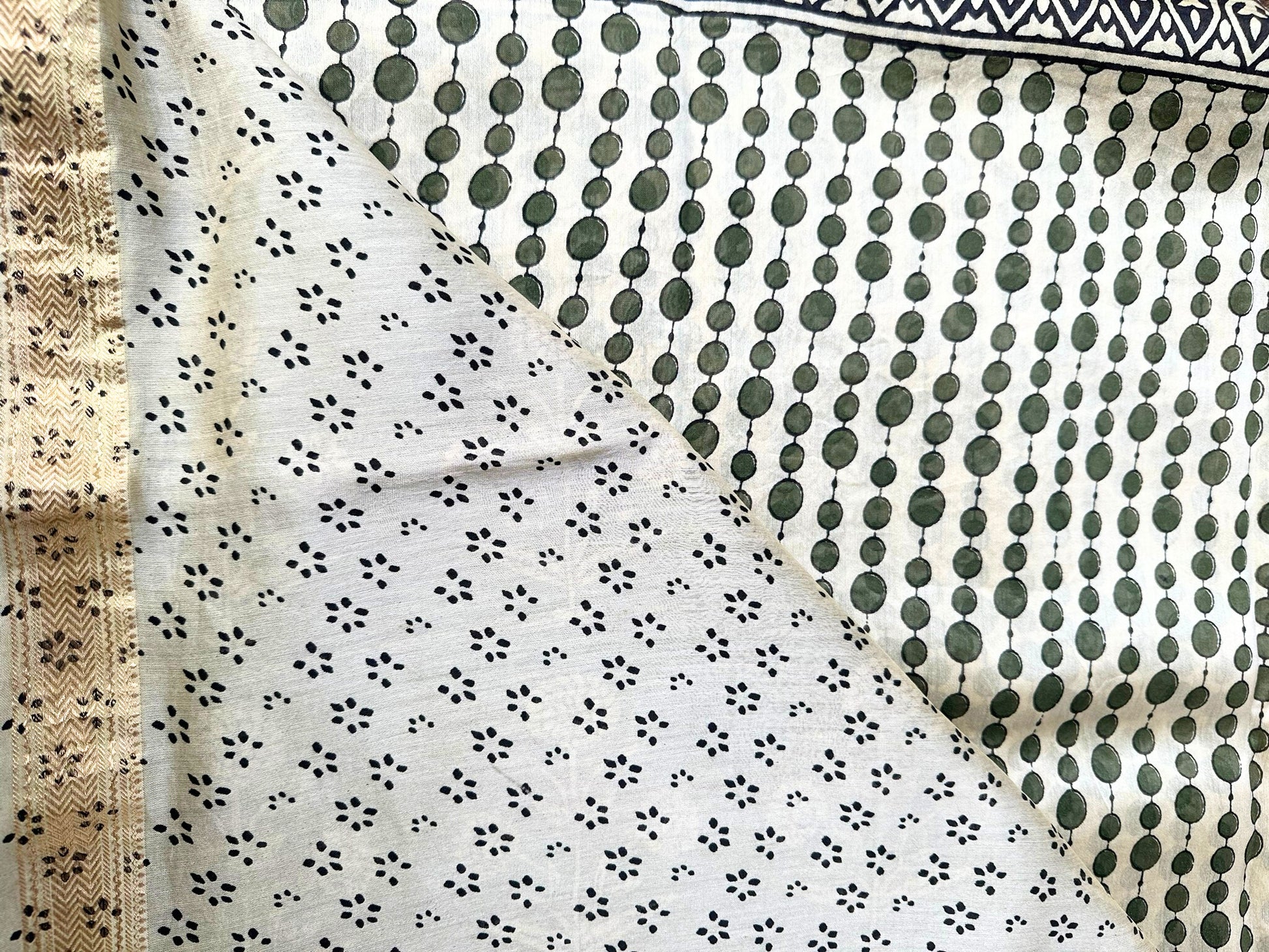 An elegant mehendi colour Maheshwari silk saree featuring hand block prints, crafted in a traditional silk–cotton blend. Lightweight with a subtle sheen, it offers a graceful drape and timeless appeal—perfect for festive and cultural occasions. Each saree is handcrafted, making every piece unique.